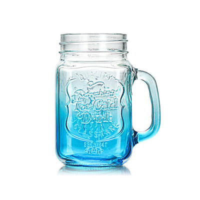 হ্যান্ডেল টিনের ঢাকনা সহ রঙিন 16 Oz ড্রিংকিং গ্লাস স্টোরেজ বোতল মেসন জার
