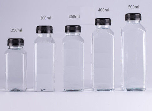 কমলা ফলের প্লাস্টিকের পানীয়ের বোতলের জন্য 12oz BPA ফ্রি ফ্রেঞ্চ স্কোয়ার প্লাস্টিক PET জুসার বোতল