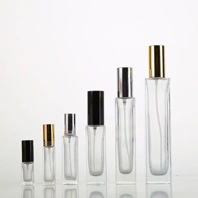 লম্বা পাতলা স্কোয়ার গ্লাস স্প্রে পারফিউম বোতল কাচের প্রসাধনী পাত্রে