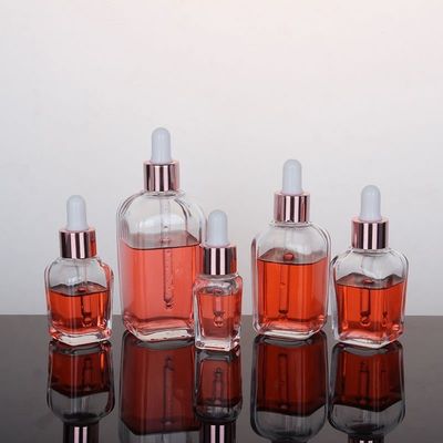স্বচ্ছ 1/2~3OZ স্কয়ার এসেনশিয়াল অয়েল গ্লাস ড্রপার বোতল গ্লাস কসমেটিক কন্টেইনার