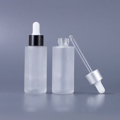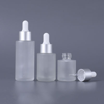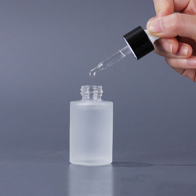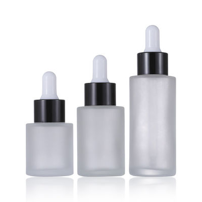 কাচের প্রসাধনী পাত্রে ফ্ল্যাট শোল্ডার ফ্রস্টেড কসমেটিক সিরাম ড্রপার বোতল