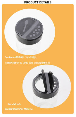 মরিচ প্লাস্টিক সিজনিং বোতল শেকার মশলা বয়াম ফ্লিপ সঙ্গে পরিষ্কার লবণ মশলা