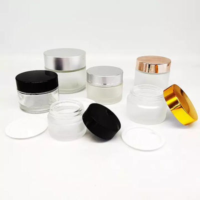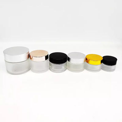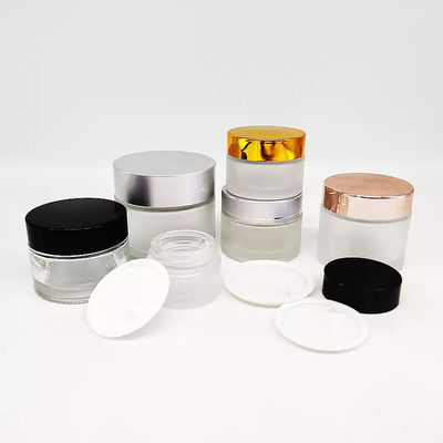 5ml 10ml 20ml 30ml 50ml 60ml 80ml 100ml পরিষ্কার কসমেটিক কাচের জার রূপার ঢাকনা সহ 100ml বিলাসবহুল প্রসাধনী জার কাচের পাত্র