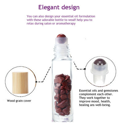 বাঁশের ক্যাপ সহ রত্ন পাথরের প্রয়োজনীয় তেল রোলার বোতলের সাথে 10ml গ্লাস রোল 5