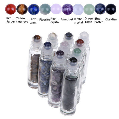বাঁশের ক্যাপ সহ রত্ন পাথরের প্রয়োজনীয় তেল রোলার বোতলের সাথে 10ml গ্লাস রোল