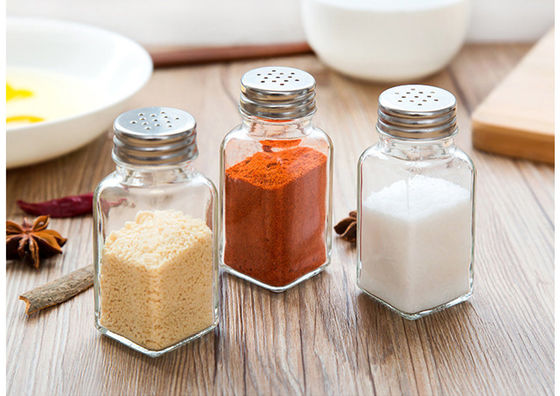 | স্বচ্ছ কাচের মশলা বোতল মসলা লবণ মরিচ জার সঙ্গে মেটাল ইস্পাত ঠোঁট | |||