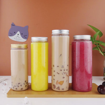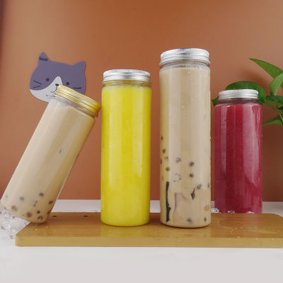অ্যালুমিনিয়ামের ঢাকনা সহ পানীয় 450ml স্বচ্ছভাবে গোলাকার প্লাস্টিক পেট বোবা জুসের বোতল